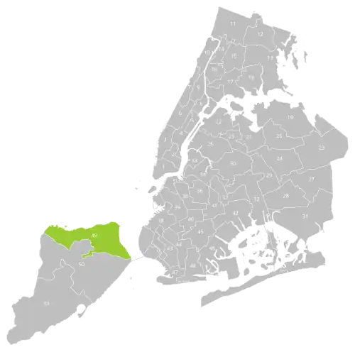New York City's 49th City Council district is one of 51 districts in the New York City Council. It has been represented by Democrat Kamillah Hanks since 2022. Hanks succeeded former councilwoman Debi Rose, who was term limited in 2021.[3]