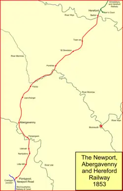 The Newport, Abergavenny and Hereford Railway was a railway company formed to connect the places in its name. When it sought parliamentary authorisation, it was denied the southern section, and obliged to use the Monmouthshire Railway between Pontypool and Newport.