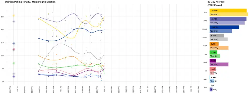 The next parliamentary elections are to be held in Montenegro before 30 June 2027.[1]