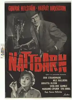 Night Child (Swedish: Nattbarn) is a 1956 Swedish crime drama film directed by Gunnar Hellström and starring Hellström, Harriet Andersson, Erik Strandmark and Nils Hallberg.[1][2] It was shot at the Centrumateljéerna Studios in Stockholm. The film's sets were designed by the art director Nils Nilsson.