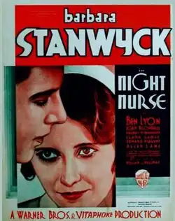 Night Nurse is a 1931 American pre-Code crime drama mystery film produced and distributed by Warner Bros. directed by William A. Wellman, and starring Barbara Stanwyck, Ben Lyon, Joan Blondell and Clark Gable. The film is based on the 1930 novel of the same name by Dora Macy, the pen name of Grace Perkins.[1] The film was considered risqué at the time of its release, particularly the scenes where Stanwyck and Blondell are shown in their lingerie.