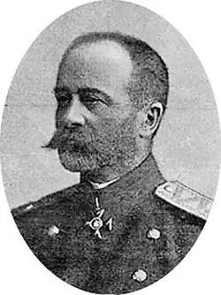 Nikolai Ivanovich Kutepov (Russian: Николай Иванович Кутепов, January 13 [O.S. January 1] 1851—January 11 [O.S. December 23] 1908/1907) was the author of fundamental Grand Ducal, Tsarist and Imperial Hunting in Russia. Kutepov has made an extensive research on subject, collecting all known documents from archives and libraries. Kutepov was also entrusted to write the appropriate article for Brockhaus and Efron Encyclopedic Dictionary. In 1893 he published A Memorable Note on the Matter of Making the Reference Collection for the History of Grand Ducal, Tsarist and Imperial Huntings in Russia ("Памятная записка о положении дела по составлению "Сбоpника матеpиалов, касающихся истоpии великокняжеской, цаpской и импеpатоpской охот в Pоссии"). In May 1894 Kutepov offered the first sample of his work to Alexander III. His final work Kutepov called "the Tsar's high quality books" ("царские книги высокого качества").[1]