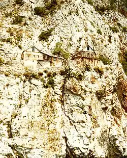 The cliffs of Karoulia, Mount Athos, where Nikon lived as a hermit since 1941