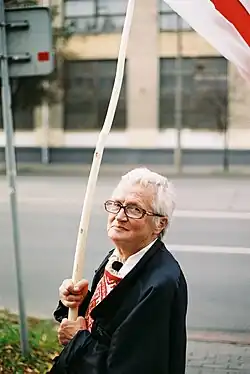 2. ^ "У здания КГБ задержана общественная активистка Нина Багинская, которая сожгла советский флаг".