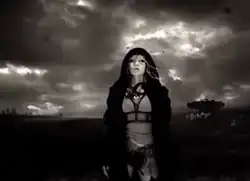 The first chorus has Koda walking through the land, and scenes of her singing. She grabs a compass, but it does not function properly. She grabs a drinking bottle, but only filled with little droplets; she tries to drink it, but falls all on her face instead.[15] As she sings the song; by the end of the second chorus, black projectile smoke is scene falling from the sky in the distance and hits parts of the abandoned city.[15] As more smoke falls and black leaves con-stellate, Koda collapses and sings the bridge on the ground. When the bridge section ends, rocks start levitating and the smoke rises, forming a black Dust devil in the distance. As more dust devil's form, they become large and closely devour Koda.[15]