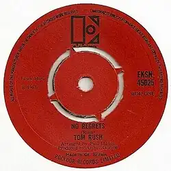 "No Regrets" is a song by folk and blues singer/songwriter Tom Rush. It is the final song on his 1968 album The Circle Game and was released as a single in the UK in January 1968 and in the US in April. It peaked at number 57 on the UK BMRB Breakers, an official extension of the UK Singles Chart.[1]