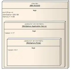 - An execution environment represents software containers (such as operating systems, JVM, servlet/EJB containers, application servers, portal servers, etc.) This is a node that offers an execution environment for specific types of components that are deployed on it in the form of deployable artifacts.[2]