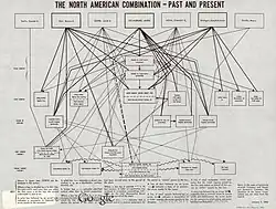 The group's complexity worked against it in settings like Congress. In one hearing, opponents republished a complex group organizational chart which North American Aviation prepared for its trademark suit against the group. The group's lawyer, testifying, objected to the chart as "childish", something "you would see in a psychiatrist's office" and "perfectly ridiculous", but then, only a moment or two later, conceded it was "essentially accurate."[84] Further, because the group re-used names, apparently simple questions had confusing answers. A member of Congress asked: "Is the North American Airlines a single corporation?" The answer was both yes (North American Airlines, Inc., the airline was a single corporation) and no (North American Airlines the Group was not).[85] Testimony got bogged down just trying to understand the organization. The CAB answered the question of why the group was so complex by saying that in part it was to evade and circumvent the Civil Aeronautics Act of 1938.[86] In other words, the law.