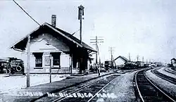 Billerica Mills station – later North Billerica – was open by 1838.[2] It served as a flag stop on the Boston and Lowell Railroad's main line and was the north terminal of the narrow gauge Billerica and Bedford Railroad (B&B). In 1998, the North Billerica Depot underwent extensive renovations as part of the Massachusetts Bay Transportation Authority's efforts to restore and expand its Billerica commuter rail stop.[3] The new depot and train station were rededicated on October 30, 1998.