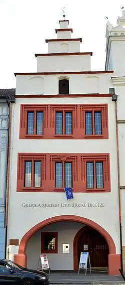 The Diocesan Museum in Litoměřice at Mírové náměstí No. 24 was affiliated with the North Bohemian Gallery in 1976. Since 1995, works from the collections of the Roman Catholic Diocese of Litoměřice have been on display here. The building is medieval, originally two stories high, with a maashaus on the ground floor and arcades. The gable above the window on the first floor is dated 1513. The original Museum of the Litoměřice Bishopric was founded in 1885 as the oldest of its kind in Austria-Hungary. The museum's activities were interrupted during the communist regime. It was reopened to the public after the Velvet Revolution in November 1989. However, the museum's collection was formed much earlier, as early as 1655, when the Roman Catholic Diocese of Litoměřice was established.[1]