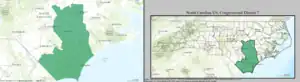 North Carolina's 7th congressional district stretches from Wilmington and the South Carolina border to parts of Fayetteville.
