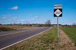 From the North Carolina-South Carolina state line, NC 207 is a two-lane rural highway traversing north through rolling hills of farmland. Once it enters Monroe city limits, it becomes Haynes Street, where it connects several neighborhoods until it reaches the downtown business district. At Franklin Street, the road widens to four-lanes. At Church Street, it becomes Skyway Drive, continuing over the CSX rail yard it continue due north till it reaches Roosevelt Boulevard, where NC 207 ends at an interchange with US 74, US 601, and NC 200. Outside Monroe city limits, it is known and labeled as Wolf Pond Road.[1]