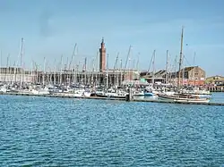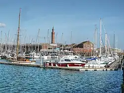 The Port of Immingham is the UK's largest port by tonnage, handling around 46 million tonnes per year.[10] It has DFDS freight routes to Brevik, Cuxhaven, Esbjerg, Gothenburg, Rotterdam and Zeebrugge.[11] The Port of Grimsby is a major car importation hub, along with being an offshore wind farm servicing hub.