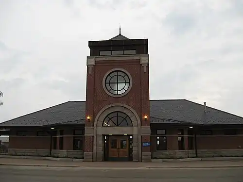 North Glenview (signed as The Glen of North Glenview) is one of two commuter railroad stations on Metra's Milwaukee District North Line in Glenview, Illinois. The station is located at 3000 Old Willow Road, is 18.5 miles (29.8 km) away from Chicago Union Station, the southern terminus of the line,[2] and serves commuters between Union Station and Fox Lake, Illinois. In Metra's zone-based fare system, North Glenview is in zone 3. As of 2018, North Glenview is the 34th busiest of Metra's 236 non-downtown stations, with an average of 1,163 weekday boardings.[1]