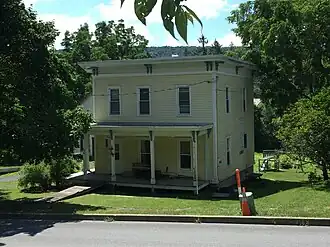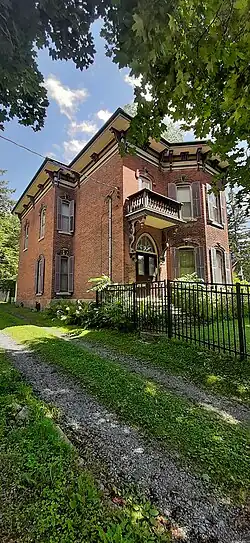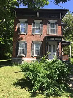 Two-story brick Italianate house built c.1870, with hipped roof, segmental arch windows, and cut stone foundation.[2]
