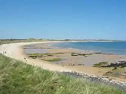 The North Northumberland Coastal Plain lies along the coast of the county of Northumberland and is listed as Natural Area No. 1 and also as National Character Area 1 by Natural England, the UK government's advisor on the natural environment in England. The region is a coastal strip, around 70 kilometres long and 3 to 10 kilometres wide, that runs from the Scottish Border to Amble on the River Coquet. Its narrow, low lying, windswept terrain has wide views east towards the sea and west towards the Cheviots. The coastal scenery is diverse. The northern part has a 'hard' cliffed coast of spectacular high cliffs, offshore islands and rocky headlands, whilst the southern strip is a 'soft' alluvial coast of wide, sweeping sandy bays backed by sand dunes and intertidal flats backed by saltmarsh. Inland, the plain is intensively farmed, typically with open, mixed arable land and few trees. The valleys and coastal fringes are characterized by woodland and permanent pasture or semi-natural grassland.[1]