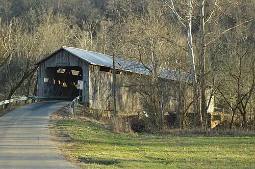 The North Pole Road Covered Bridge is a covered bridge in rural Brown County in the U.S. state of Ohio. The 169-foot-long bridge crosses Eagle Creek approximately four miles east of the town of Ripley. Originally built in 1865, it was damaged and rebuilt after a flood in 1997.[1]