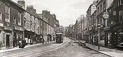 The First World War resulted in some restrictions in services. The halfpenny fare was abolished but it was agreed that wounded soldiers in blue uniforms would be allowed to ride free of charge. Like many tramways, the company struggled with the recruitment of male tramway employees into the armed forces and on 20 December 1915 the first female conductors were employed.[12] The women were employed on a contract to work 54 hours per week and they were paid at the same rate as men conductors, £1 0s. 3d.[13] (equivalent to £102.48 in 2023).[2] Towards the end of the war it was reported that some of the women were working 70 hours per week due to the prevalence of sickness and consequent lost time.[14]