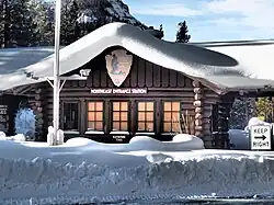 The Northeast Entrance Station to Yellowstone National Park, in Park County, Montana, is a rustic log building designed by the National Park Service Branch of Plans and Design under the direction of Thomas Chalmers Vint and built in 1935.[3] The entrance station straddles U.S. Route 212 (US 212) west of Silver Gate. A combined ranger station and residence is located nearby. All buildings were constructed by George Larkin of Gardiner, Montana.[4]