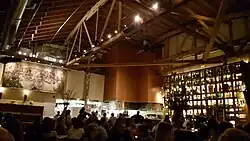 Nostrana's "sister" wine bar, Enoteca Nostrana, opened next door to the restaurant in 2018.[41][42] The 1,500-square-foot (140 m2),[43] 40-seat bar emphasizes European and natural wines and has a modern aesthetic compared to Nostrana's "rustic" atmosphere.[44][45] Enoteca Nostrana's interior features Italian design and a two-story wine cellar made of glass and steel, capable of storing 3,000 bottles.[46] The bar's opening selection featured 130 wines.[47]
