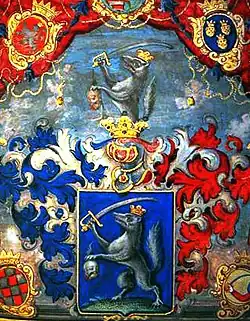 In the 15th century the Novosels settled below Medvednica. The Novosels were highly represented in the battles against the Turks, as evidenced by the coat of arms of the family, which represents a wolf holding a severed Ottoman head.[3]