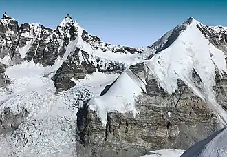 Nupla Khang is a mountain in the Mahalangur Himal section of the Himalayas along the border of Nepal and China. The peak is situated between Cho Oyu to the east and Everest to the west.
