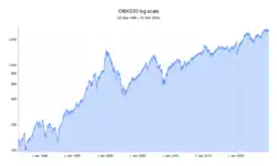 The OMXS30 index started on 30 September 1986 with a base value of 125 and it is reconstituted and rebalanced semi-annually on the first trading day in January and July.[1][2] The original name of the index was just OMX, but it was changed to OMXS30 on 15 November 2004.[3]