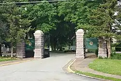 Oakdale was established as a non-profit cemetery by a group of Davenport businessmen as an alternative to the overcrowded Davenport City Cemetery and the for-profit Pine Hill Cemetery.[4] It was incorporated as the Oakdale Cemetery Company May 14, 1856. The cemetery board hired Captain George F. de la Roche, who had finished the design of Oak Hill Cemetery in Washington, D.C. five years earlier, to complete the design and platting of the cemetery.[4][5] It was designed as a rural or garden cemetery, but it transitioned to a landscape-lawn cemetery beginning in the late 19th century.[6] It covers more than 78 acres (32 ha).[7] The first numbered burial at Oakdale was that of three-month-old Mary Larned Allen on September 15, 1857, though several earlier burials were recorded at a later date, some from as early as October, 1855.[8] Some of the graves in the cemetery had been transferred from the overcrowded City Cemetery in the west end. The cemetery is located across Eastern Avenue from the former Iowa Soldiers' Orphans' Home, and it contains the graves of the orphans that died at the home. There are also at least 11 graves of former slaves who escaped to freedom by way of the Underground Railroad, which led to its inclusion on the Network to Freedom.[9]