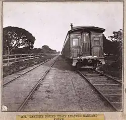 Historic photograph of a train at Oakland Point from 1860/1870 era