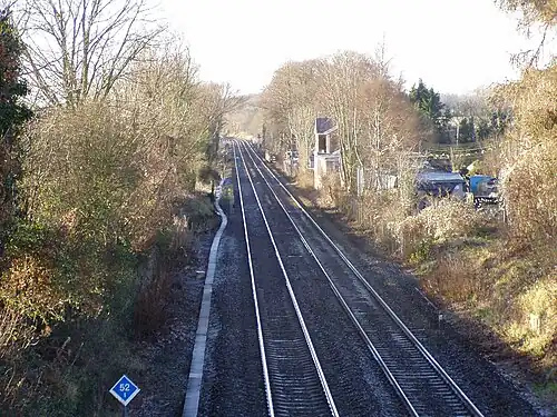 2. ^ Butt, R. V. J. (October 1995). The Directory of Railway Stations: details every public and private passenger station, halt, platform and stopping place, past and present (1st ed.). Sparkford: Patrick Stephens Ltd. p. 176. ISBN 978-1-85260-508-7. OCLC 60251199. OL 11956311M.