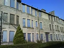 Until the 1990s, the area was characterised by four-storey red sandstone tenements built at the end of the 19th century and the start of the 20th,[2][3] and three-storey Rehousing (low build quality) grey reconstituted stone tenements from the 1930s.[3][4][5][6][7] A continuous line of tenements faced Richmond Park – a typical large urban park with boating pond, opened in 1899 and named after the Lord Provost of the time, Sir David Richmond whose tube works were located nearby[8] – across busy Rutherglen Road, one of Glasgow's main arterial routes.[9][10][11]