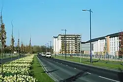 After a long process of demolitions –beginning with the red sandstone tenements which had been redeveloped just a few years earlier, leading to more problems being created than solved[3] – in April 2005 work started on a comprehensive redevelopment scheme to create a new neighbourhood consisting of around 1,510 houses (1,217 or 81% new private and 293 or 19% for social rental, 213 of which are new).[27] The award-winning project was promoted by Glasgow City Council, the lead developer being Bett Homes (later Avant Homes)[28] with involvement from the Link and Glasgow Housing Associations, the local housing stock of the latter now being owned and managed by the New Gorbals Housing Association. By September 2007, part of the traffic by-pass (including a new Boulevard), 44 private houses and 172 social-rented dwellings had been constructed.