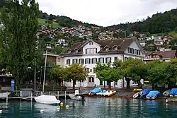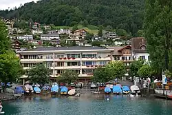 The dominant feature of the village is the lakeside castle of Oberhofen, dating to the Middle Ages, but constantly changed and updated throughout the ages. The castle houses a division of the Historic Museum of Bern, and has a formal lakeside garden in the English style with many rare specimen trees.