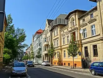 Obrońców Bydgoszczy street is located in downtown district, in Bydgoszcz, Poland. Many of the buildings along this axis are either registered on the Kuyavian-Pomeranian Voivodeship heritage list, or part of a historical ensemble of Eclectic and Art Nouveau architecture in the city.