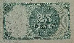 The U.S. Dollar has numerous discontinued denominations, particularly high denomination bills, issued before and in 1934 in six denominations ranging from $500 to $100,000. Although still legal tender, most are in the hands of collectors and museums. The reverse designs featured abstract scroll-work with ornate denomination identifiers. With the exception of the $100,000 bill, these bills ceased production in the 1940s, and were recalled in 1969. Of these, the $100,000 was printed only as a Series 1934 gold certificate and was only used for internal government transactions. The United States also issued fractional currency for a brief time in the 1860s and 1870s, in several denominations each less than a dollar.