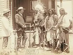 Harry Oelrichs (second from left) speaking with tribal leaders in 1887