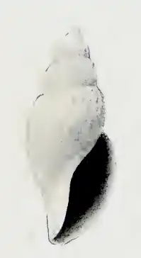 (Original description) The thin, white shell is fragile and acute. It contains about six whorls, the protoconch whorl eroded. The suture is distinct. The whorls are evenly rounded. The spiral sculpture consists of fine even equal close-set minute threads covering the whole surface. The axial sculpture consists of almost microscopic, even, regular incremental lines, and on the third whorl about 16 small sharp ribs crossing the whorl, with wider interspaces and becoming obsolete on the fourth whorl. The anal sulcus is shallow. The aperture is simple. The inner lip erased. The columella is attenuated in front. The siphonal canal is short and straight.[1]