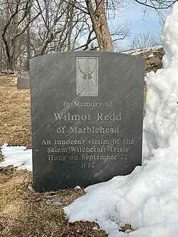 Cenotaph of Wilmot Redd (1692), victim of Salem Witch Trials