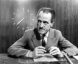 Sven Olof Björklund (28 June 1916 – 27 March 1981),[1] better known as Olle Björklund, was a Swedish actor and television host. Björklund was the first Swedish television news presenter, hosting the national news show Aktuellt from 1958. In that capacity, he quickly earned his popular nickname Mr. Aktuellt. However, in 1961, Björklund's career came to an end as he was fired from his position at Swedish Television in the midst of a controversy involving a tobacco advertisement.[2]