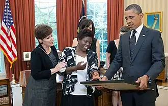 - ^ Jamieson, Sue (June 22, 2011). "Olmstead Champion Meets the President". U.S. National Archives and Records Administration. Retrieved February 27, 2018.