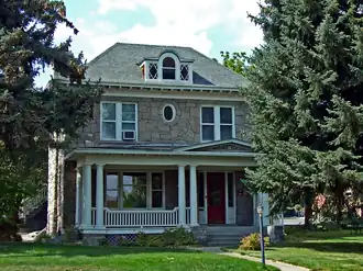 After he died in the late 1870s, she married Ingethen Olsen, an American pioneer who owned a ranch in Fergus County, Montana, but the house remained in her name.[3] By 1884–1885, they built a two-story rectangular addition and a gable.[3] After Olsen died in 1904, his wife replaced the wooden cottage frame with a two-story front built with bluestone; it was completed in 1908–1909.[3] When she died in 1918, the house was inherited by her daughter Amelia M. Olsen, who lived there until 1946.[3]