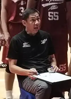 Rodericko Cesar "Olsen" Escueta Racela (born November 1, 1970) is a Filipino coach and former player.[1] He is both the head coach for the Perpetual Altas in the NCAA, and is an assistant coach for the Barangay Ginebra San Miguel of the Philippine Basketball Association (PBA). He played for 18 seasons during his PBA career. He was also a notable member of the Philippine national basketball team on many occasions.