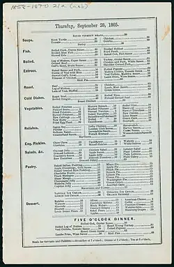 - ^ "Parker House: Menus: Whats on the menu?". menus.nypl.org. Retrieved October 14, 2022.
