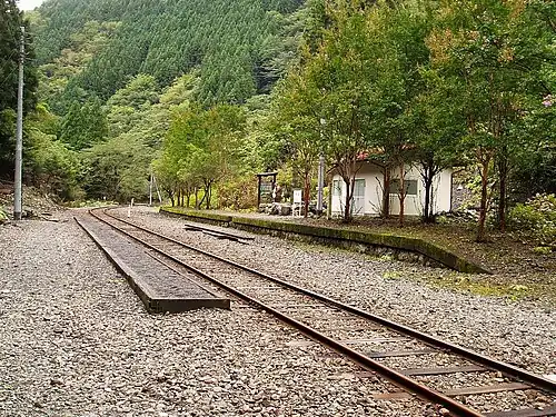 Located in an isolated mountain area surrounded by forests, it has very few passengers. It is known as a hikyō station among rail enthusiasts.[2]