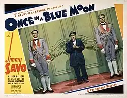 Once in a Blue Moon is a 1935 American drama film directed by Ben Hecht and Charles MacArthur and starring Jimmy Savo, Nikita Balieff and Cecilia Loftus.[1] It was one of four films the writing-directing team produced at the Astoria Studios in New York.[2] It was, along with Soak the Rich, a critical and commercial disaster.[3] Hecht and MacArthur also attempted, unsuccessfully, to avoided certification problems with the film by ignoring the Production Code Administration and sending it straight to Joseph Breen.[4]