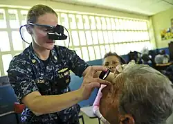 An ophthalmologist is a physician who undergoes subspecialty training in medical and surgical eye care.[3] Following a medical degree, a doctor specialising in ophthalmology must pursue additional postgraduate residency training specific to that field. In the United States, following graduation from medical school, one must complete a four-year residency in ophthalmology to become an ophthalmologist. Following residency, additional specialty training (or fellowship) may be sought in a particular aspect of eye pathology.[4]
