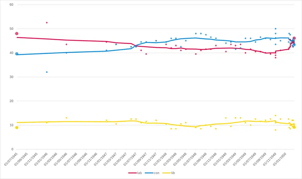 The date range for these opinion polls are from the 1945 general election until the general election.