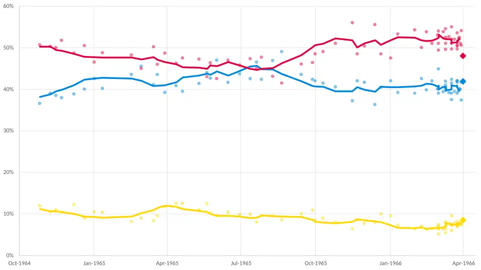 In the run-up to the 1966 general election, various polling organisations conducted opinion polling to gauge voting intention amongst the general public. Such polls, dating from the previous election in 1964 to polling day on 31 March 1966, are listed in this article.