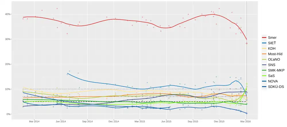 - ^ "PRIESKUM: V parlamente by bolo sedem strán, SaS by sa tam nedostala". 18 February 2016.