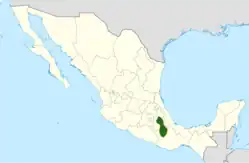 Opuntia huajuapensis is native to parts of Oaxaca, Puebla, and Tlaxcala in Mexico, where the species grows at elevations of 2,000–2,700 m (7,000–9,000 ft). It primarily grows in Pre-cordilleran steppes and Oak-savannah.[1]